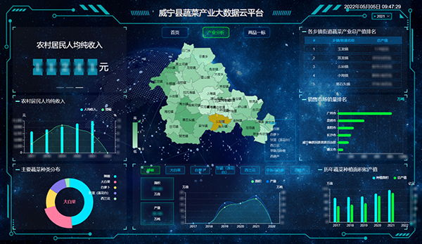 蔬菜產(chǎn)業(yè)大數(shù)據(jù)平臺(tái)的建設(shè),不僅豐富了消費(fèi)者的“菜籃子”,還鼓起了當(dāng)?shù)厝罕姷摹板X袋子”,成為助力威寧在鄉(xiāng)村振興上開新局的“綠色引擎”。2021年,威寧蔬菜種植面積穩(wěn)定在40萬畝以上,其中以縣城周圍9個(gè)鄉(xiāng)鎮(zhèn)打造高標(biāo)準(zhǔn)的7萬畝核心基地,品種以‘三白’蔬菜為主,還有西藍(lán)花、辣椒、香蔥、菜心等40余個(gè)品種,年產(chǎn)量在250萬噸左右,年產(chǎn)值40億元左右。”威寧自治縣蔬菜產(chǎn)業(yè)發(fā)展中心主任謝洪說。
