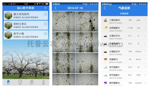 托普云農(nóng)物聯(lián)網(wǎng)綜合管理云平臺(tái),服務(wù)貫穿“數(shù)字果園”工程各個(gè)環(huán)節(jié),為“數(shù)字果園”建設(shè)推廣提供有力的技術(shù)支持。現(xiàn)場(chǎng)照片: