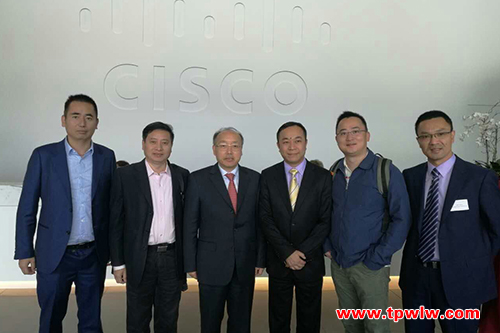 周國輝廳長(左三)、陳渝陽董事長(右一)一行在思科