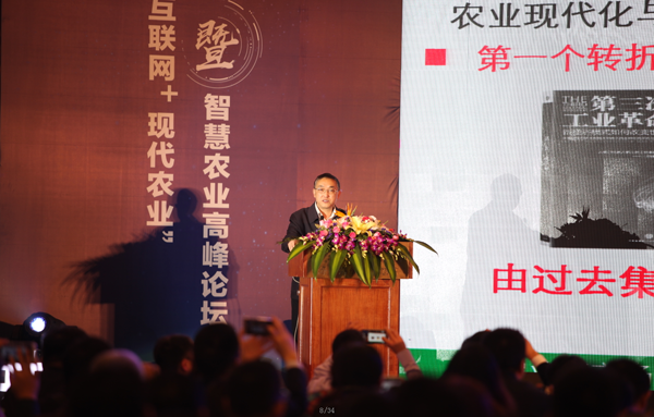 大家早上好。今天的高峰論壇很有創(chuàng)新,大家發(fā)現(xiàn)了沒有,互聯(lián)網(wǎng)+現(xiàn)代農業(yè),立足當下,后邊還跟著智慧農業(yè),是發(fā)展目標,跟中央文件,直接打在了現(xiàn)代農業(yè)后面,+放在了上面很有創(chuàng)新。