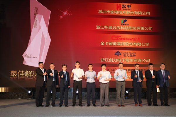 托普云農董事長陳渝陽(左五)出席“最佳解決方案獎”的頒獎儀式