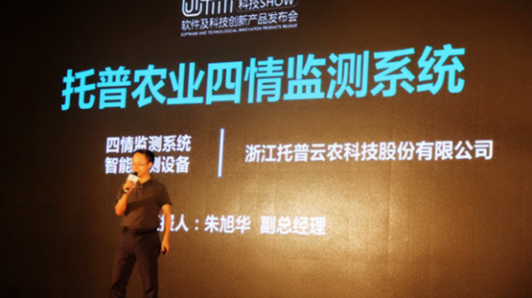 托普云農(nóng)副總經(jīng)理朱旭華在“創(chuàng)未來”軟件及科技創(chuàng)新產(chǎn)品發(fā)布會現(xiàn)場