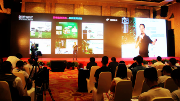 托普云農(nóng)副總經(jīng)理朱旭華在“創(chuàng)未來”軟件及科技創(chuàng)新產(chǎn)品發(fā)布會上介紹農(nóng)業(yè)四情監(jiān)測系統(tǒng)