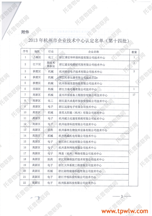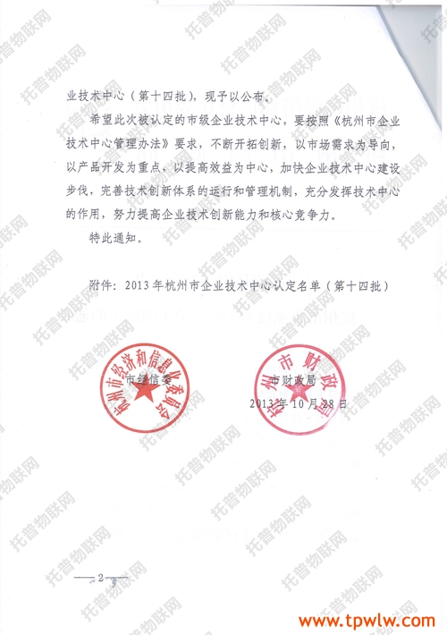經(jīng)企業(yè)申報各有關(guān)單位推薦,并組織專家評審、社會公示、經(jīng)杭州市經(jīng)信委和財政局研究認(rèn)定浙江托普儀器有限公司等65家企業(yè)技術(shù)中心為2013年杭州市企業(yè)技術(shù)中心(第十四批)。