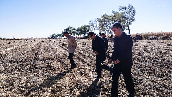 謝建華副主任、張永林副主任、陳渝陽董事長走在黑土地上