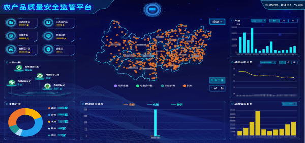 托普云農搭建的兩個平臺整合已有的相關系統資料,從不同方面對全縣農業產業進行分析對比,追溯主體和產品分布、農產品檢測動態等,農業管理部門可以通過圖表、視頻等形式詳細了解農業產業發展全貌,實現農產品全產業鏈數字化監管。