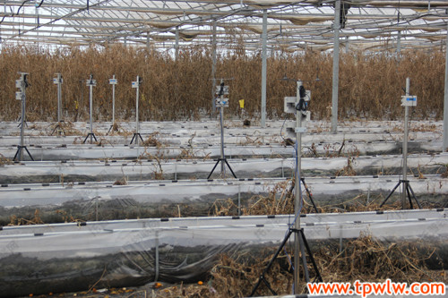 圖為:大棚內所種作物????在大田的參觀中,大家看到了工作中的田間氣象站及中繼節(jié)點,在檢測土壤信息的同時,還兼顧測試氣象情況,為實現合理化灌溉及用肥提供科學依據。