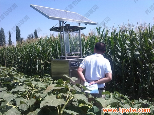 在昌吉示范基地的田間地頭,隨處都能看到托普儀器生產的田間氣象站、殺蟲燈、蟲情測報燈等高科技儀器,他們并不是分散的個體,而是通過托普農業物聯網“四情”自動監控系統將這一系列的高科技儀器有序串聯,科學搭建綜合運行預測、預報、預警的綜合監測站,實時監測基地情況,協助用戶采取正確方法應對四情危機。