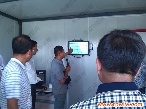 圖為:托普儀器駐新疆辦事處的技術人員介紹“四情”自動監控系統情況