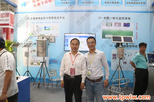展會期間,農業部種植業管理司曾衍德司長、農業部全國農技推廣中心陳生斗主任、謝建華副主任、北京市土肥站廖洪副站長、甘肅省土肥站崔增團站長、廣西區土肥站賓士友站長都陸續到托普儀器展位視察,公司陳渝陽總經理、陳曦經理為一眾領導詳細介紹了物聯網系統及各種儀器設備。謝建華副主任在視察期間與陳渝陽總經理熱切的聊起了“托普土壤墑情監測與預警信息系統”,他表示對墑情、旱情的有效把握是提高災情防治、提高種植產量、高效節水施肥的重要保證。