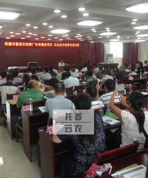 英德市在實施基層農技推廣體系建設項目時在托普云農公司引進農藥殘留速測儀、土壤(肥料)養分速測儀、蟲情測報燈和農業小環境監測系統等產品。為了讓農業技術指導員熟悉產品的性能和操作方法,使之更好的運用于基層農業的生產、監測等環節,托普云農公司應邀對相關人員進行產品培訓,為其提供售后服務和技術支持,從而推動英德市農技推廣體系的建設和發展。