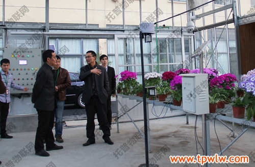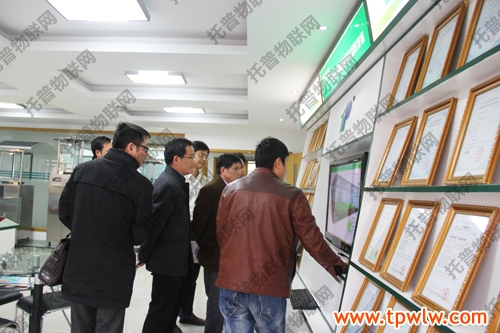 圖為:托普儀器技術(shù)人員為吳處長等領(lǐng)導(dǎo)演示物聯(lián)網(wǎng)系統(tǒng)的室內(nèi)操作