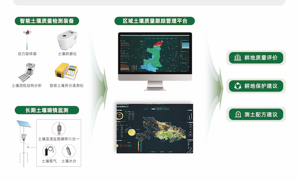 農田耕地質量監測管理在土地平整、農田整治的基礎上,利用耕地質量監測智能化裝備與土壤傳感器體系采集土壤理化相關指標、土壤含水量、區域農業氣象等數據,實現田間地情、肥情、環情、墑情的監測分析。聯動應用區域土壤質量跟蹤管理平臺,為耕地監管單位建立數字化管理體系,實現高標農田耕地質量的長效化、動態化、智能化監測與管理。