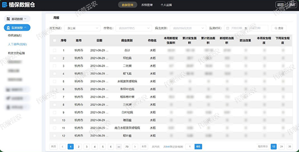 托普云農(nóng)農(nóng)作物重大病蟲智慧監(jiān)測預(yù)警平臺重點(diǎn)圍繞監(jiān)測預(yù)警、植物檢疫、藥政管理等主要業(yè)務(wù)科室進(jìn)行業(yè)務(wù)線上化,進(jìn)一步通過構(gòu)建植保數(shù)據(jù)倉,打通省市縣三級業(yè)務(wù)單位,構(gòu)建一體化數(shù)據(jù)采集服務(wù)平臺及綜合決策分析平臺。平臺匯集了智能蟲情測報(bào)、昆蟲性誘和田間調(diào)查等業(yè)務(wù)數(shù)據(jù),使用專業(yè)的對比分析和可視化數(shù)據(jù)專題分析,打通系統(tǒng)間數(shù)據(jù)壁壘,實(shí)現(xiàn)數(shù)據(jù)共享,智能提升農(nóng)作物重大病蟲害監(jiān)測預(yù)警水平及其核心業(yè)務(wù)的信息化,為保障糧食安全、蟲口奪糧提供重要的決策依據(jù)。
