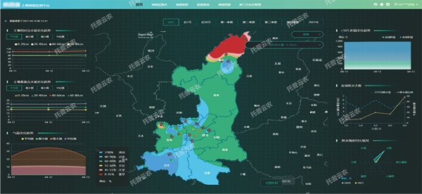 土壤墑情監(jiān)測:包括實時數(shù)據(jù)采集、數(shù)據(jù)在線分析、任務管理、苗情監(jiān)測和遙感分析。傳感器采集實時數(shù)據(jù),以列表和圖表形式展現(xiàn),包括土壤含水量和土壤溫度、氣象數(shù)據(jù)、種植數(shù)據(jù)和專題圖。所有傳感器采集的數(shù)據(jù)按時間以列表形式展現(xiàn),一目了然,支持導出Excel格式。