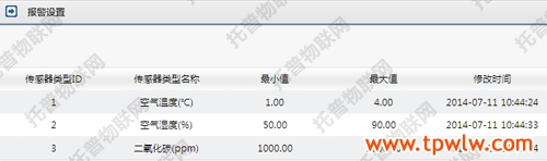 當空氣溫/濕度、CO2濃度等環境監測數據超過設定的預警值時,系統自動預警,生成預警事件,通過手機短信及網頁報警提示管理人員或工作人員進行管理和控制。該模塊還可對系統產生的各個環境預警事件進行詳細記錄,便于事后原因分析和對工作人員工作質量進行跟蹤監督。