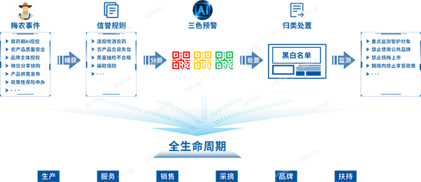 ③首個人工智能應用于品質管理,以禁藥期為切入智能管控肥藥使用應用AI農事行為識別、AI農技專家,禁藥期農事AI行為監測、肥藥兩制綠色防控、進一步實現農場生產管理與政府監管方面的無人化、智能化,確保農業數據的百分百真實采集,高可靠保障農產品質量安全。在楊梅主產區42個入口配置圖像識別攝像頭,對禁藥期上山打藥的行為進行自動監控,實現發現藥桶進山,村干部思想教育,全面提升梅農品質意識,提高品質品牌。