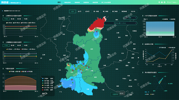 墑情監(jiān)測站點收集墑情資料,并在田間試驗,定期測定記錄土壤含水量,通過墑情設(shè)備,自動采集墑情數(shù)據(jù)。所有數(shù)據(jù)和資料匯總到墑情自動監(jiān)測系統(tǒng),系統(tǒng)負(fù)責(zé)對收集到的資料和田間試驗結(jié)果進行統(tǒng)計、分析和梳理,形成墑情監(jiān)測“一張圖”,體現(xiàn)監(jiān)測時效性,形成土壤墑情評價指標(biāo)體系。